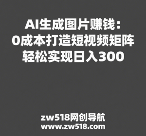 AI生成图片赚钱:0成本打造短视频矩阵,轻松实现日入300+ – zw518网创导航